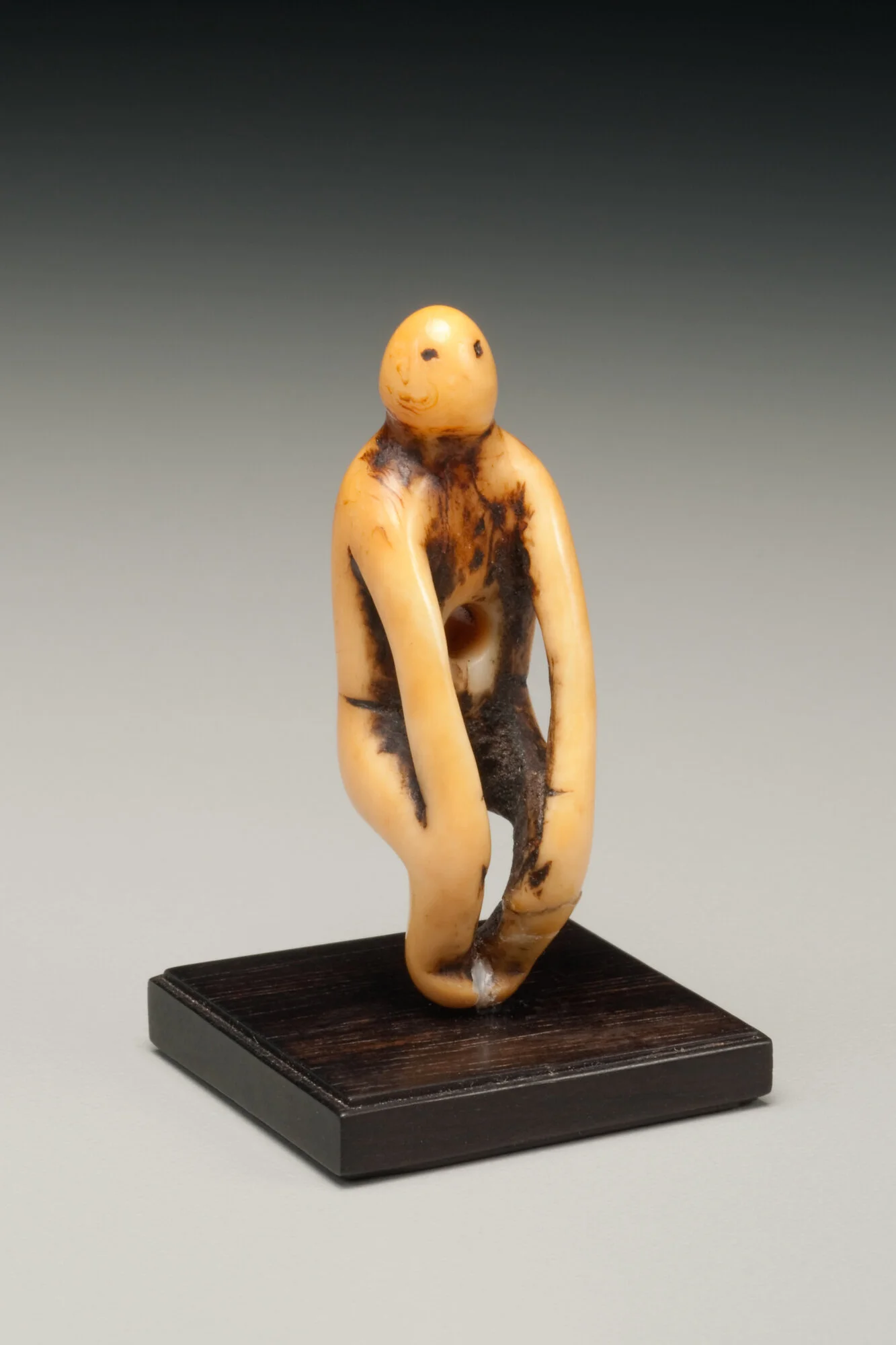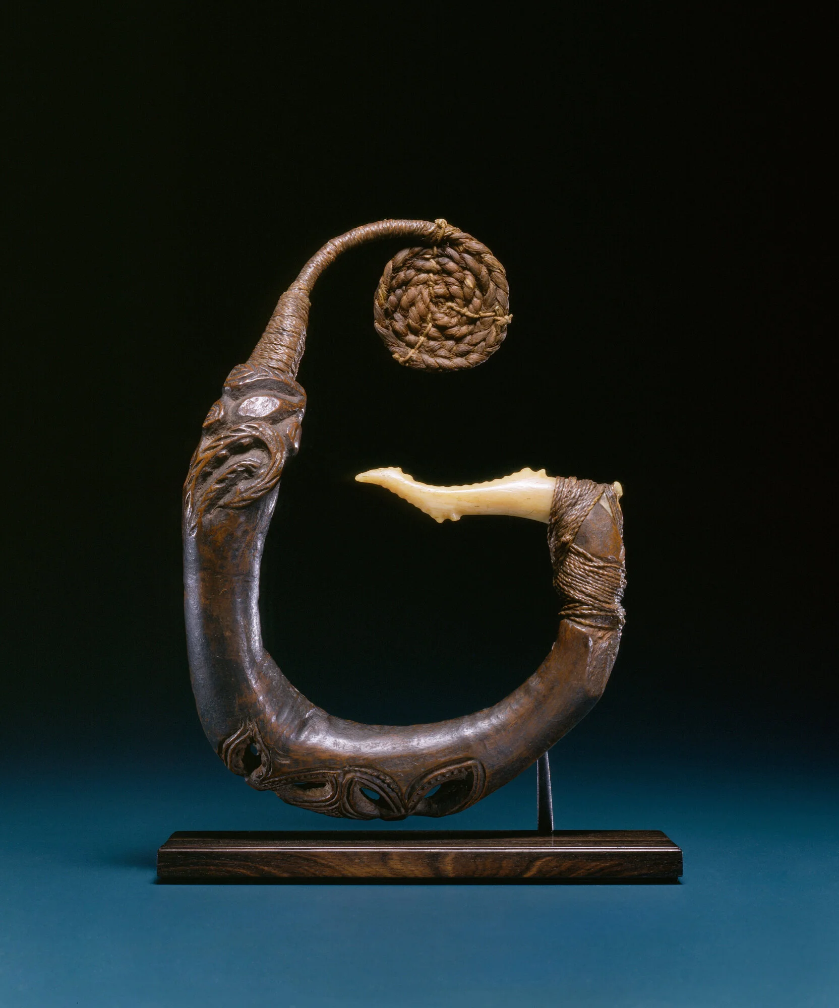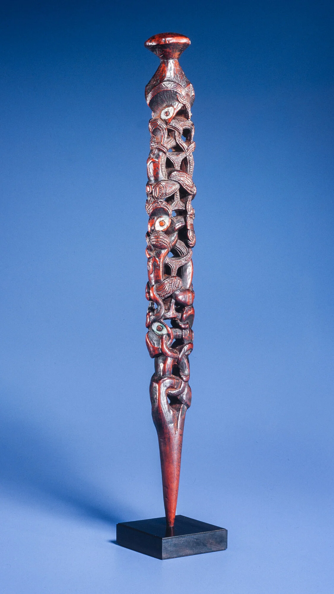 Wood, frigatebird feathers, glass beads, cuscus teeth, cloth, and fiber