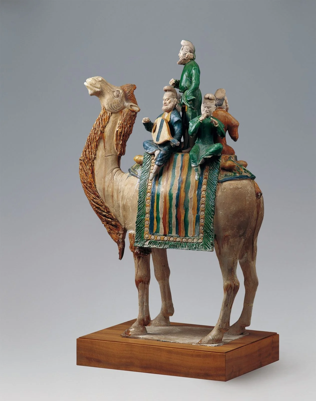 Of all the travelers to Chang’an, the most successful group came from the distant kingdom of Sogdiana, located far to the west in modern Uzbekistan and Tajikistan. These Persian speakers seamlessly connected the cultural realms of China and Iran. While some traders and artisans traveled back and forth across Asia, others settled in China, where they helped fuel a fashion for Central Asian culture. One Sogdian community leader who died in China chose to be buried in a Sino-Sogdian manner and commissioned the funerary couch on view in this exhibition. Over time, the Sogdian population was gradually absorbed into Chinese society. Today, the Sogdians are regarded as a lost people.