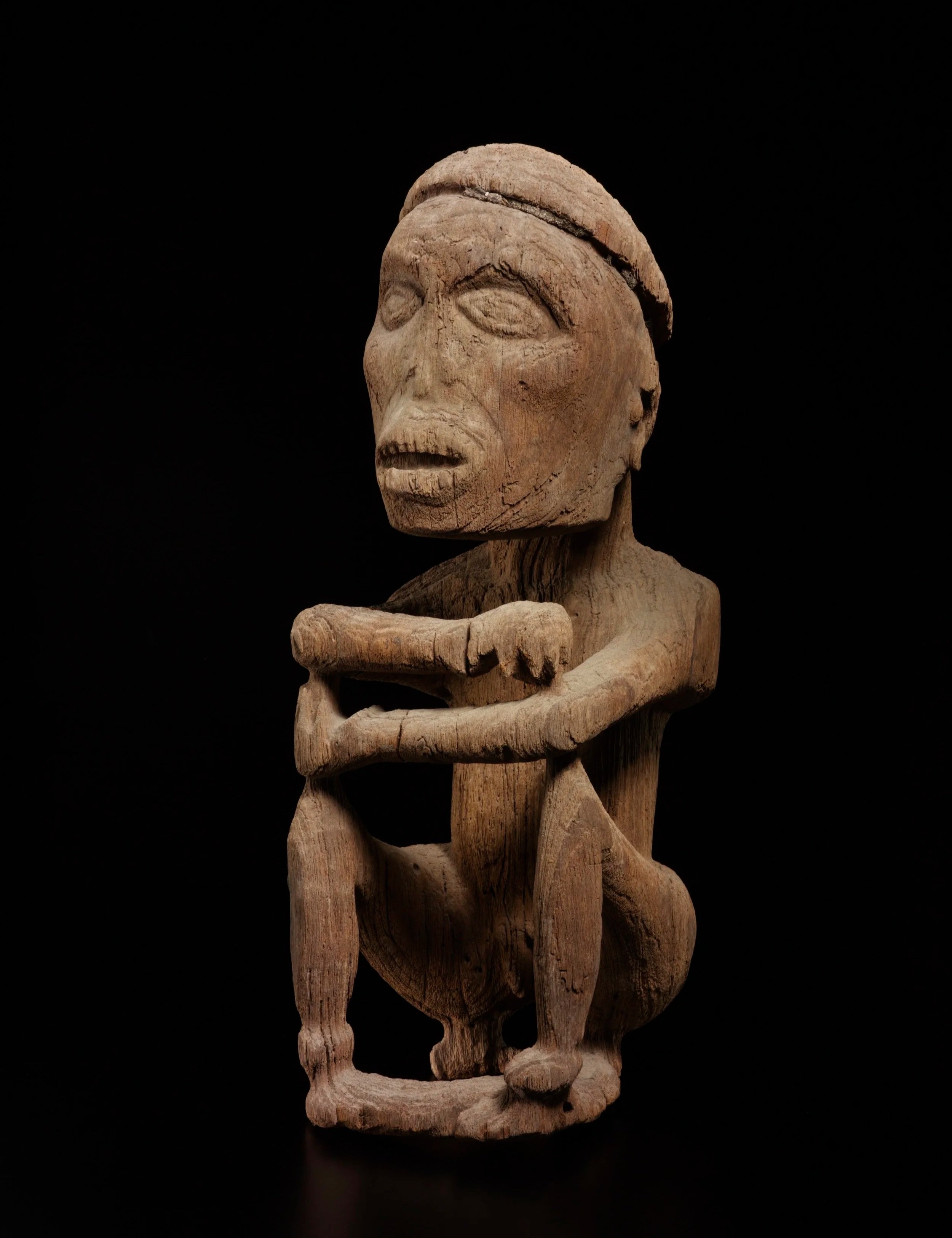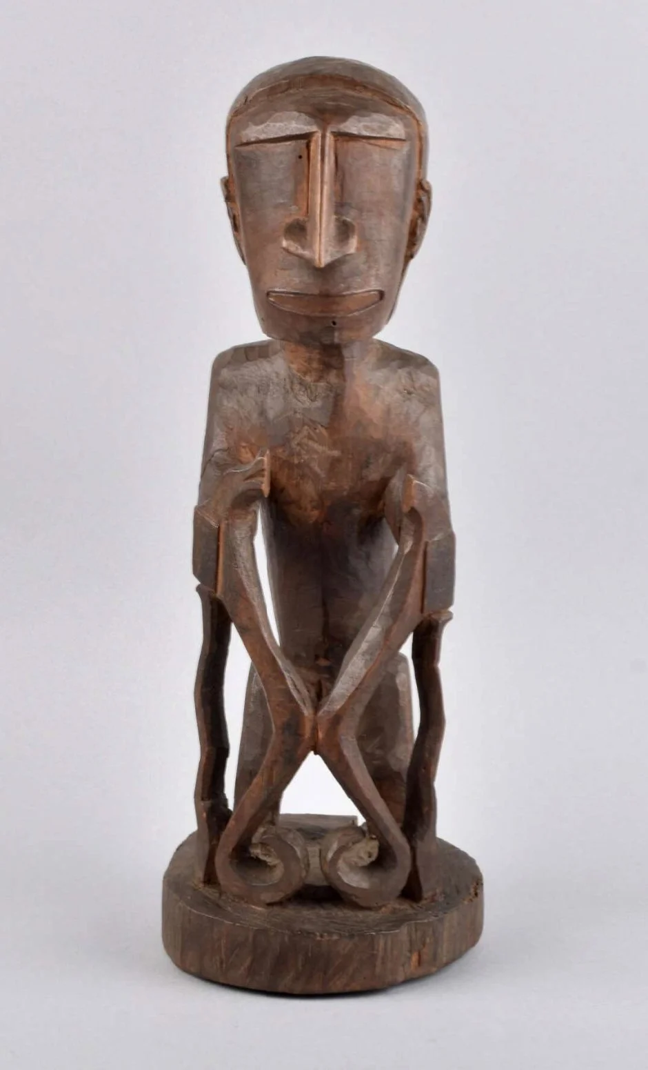 Ancestor image of a seated person with an elongated head and crossed arms | Korwar
