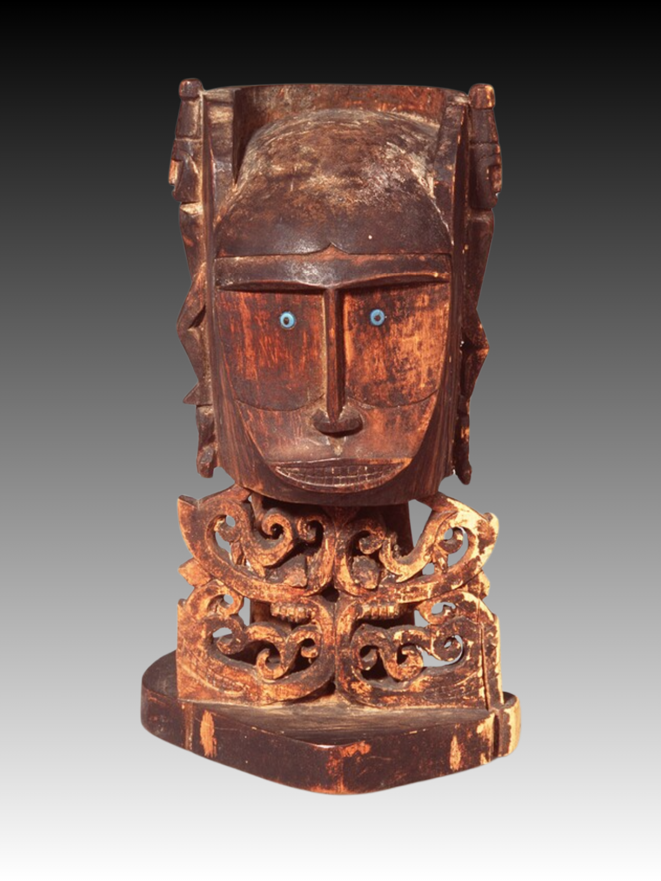 Ancestor statue decorated with standing human figures on both sides of the head | Korwar