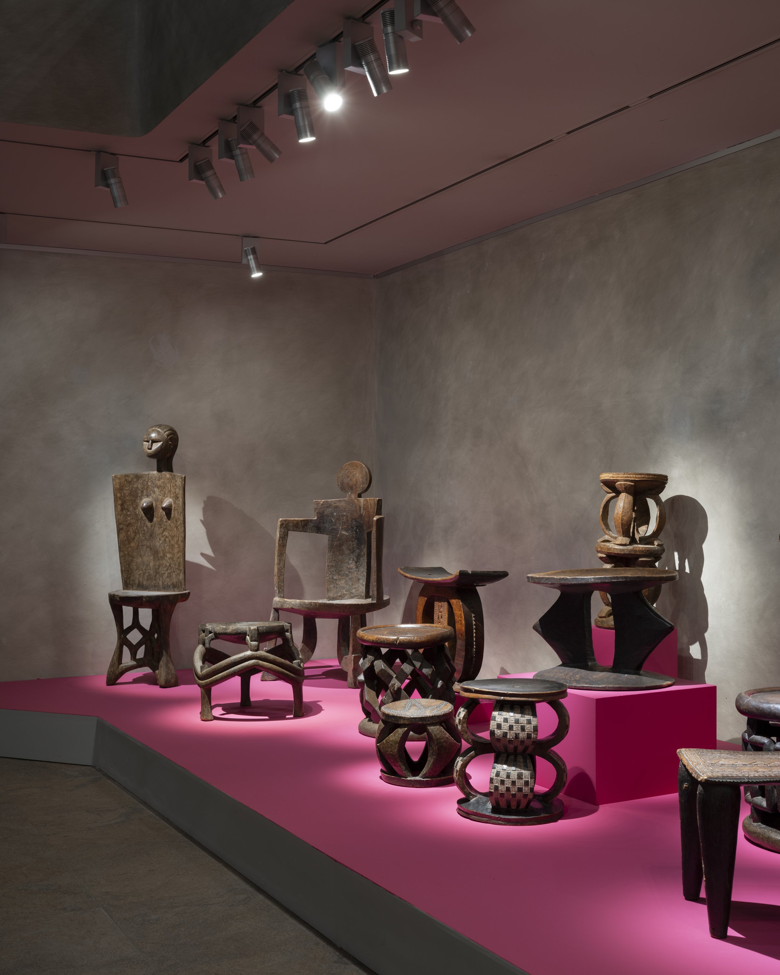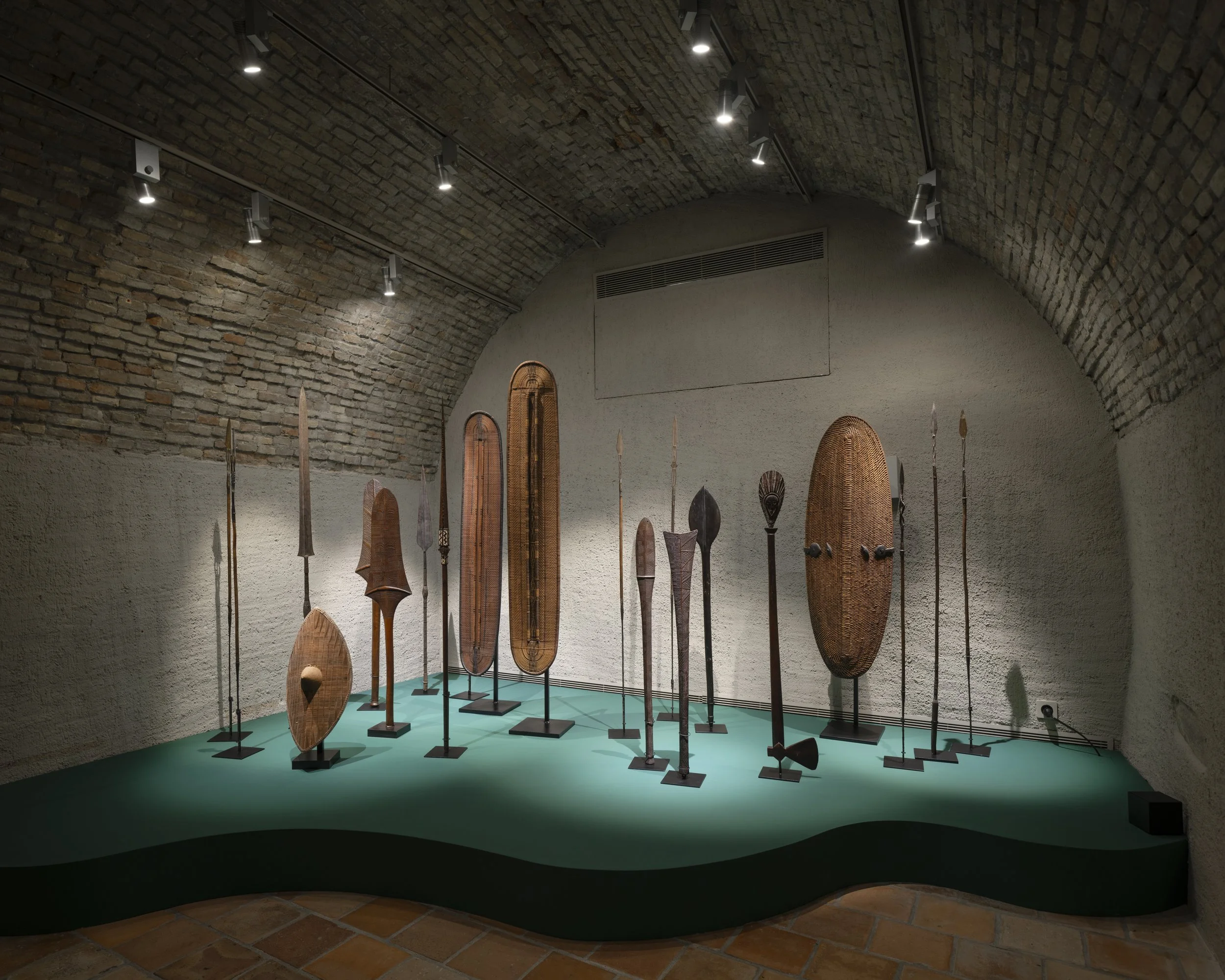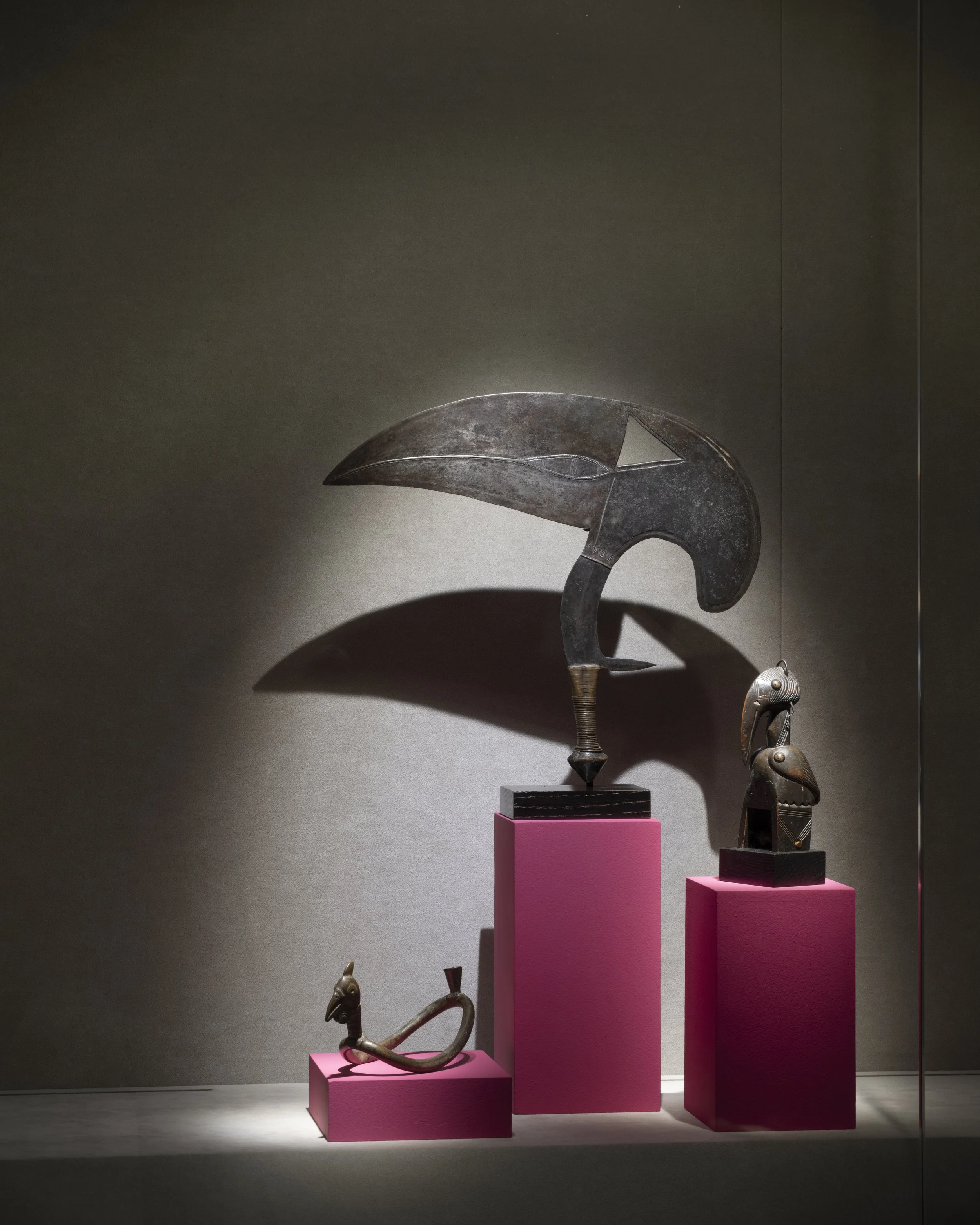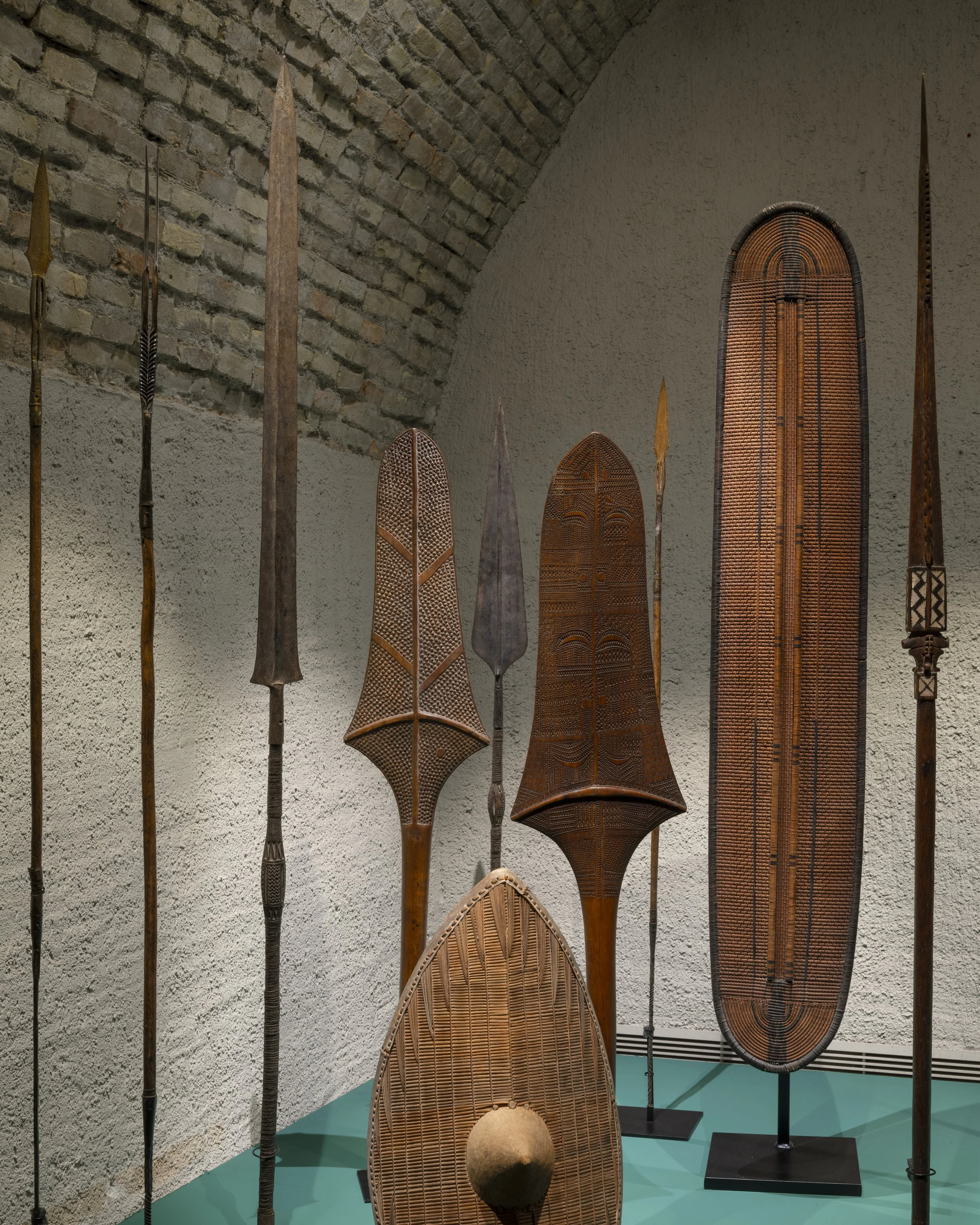 The exhibition is divided into several sections corresponding to the different rooms of the museum. It stages the objects as characters in a narrative, interacting with one another. In this imaginary play, the spirits of the place, those inhabiting the objects, those of the museum, those of the forefathers and ancestors, engage in a conversation across time and space. The objects are grouped according to visual, symbolic, or thematic criteria and presented from a transcultural perspective.