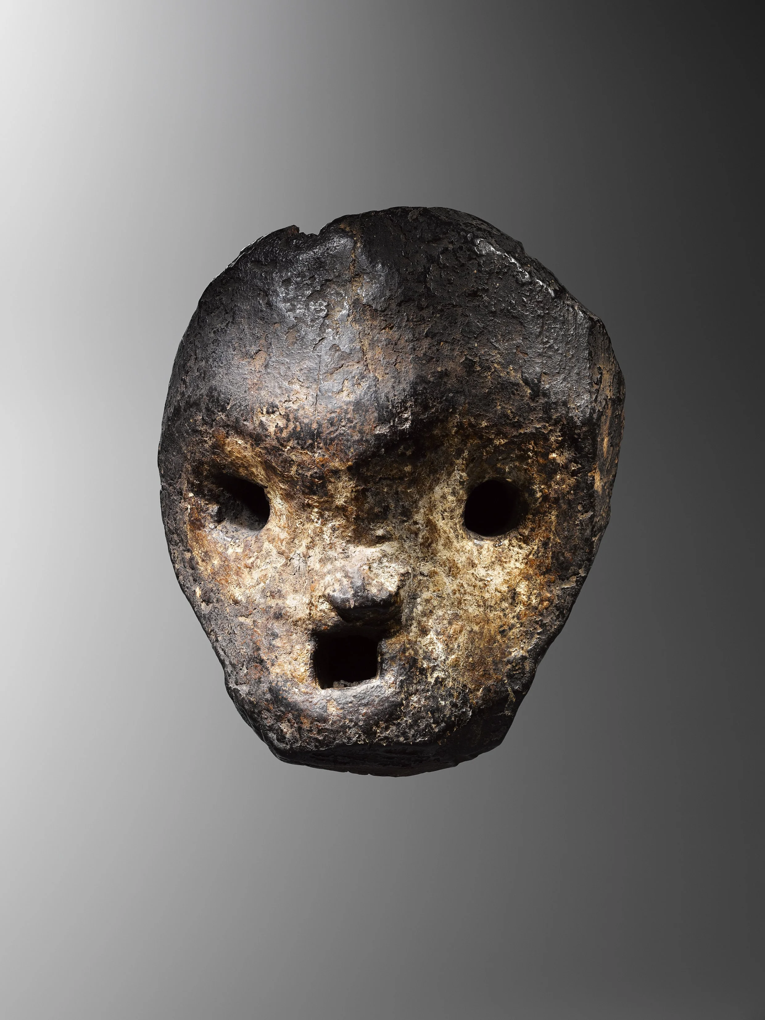 This publication is enriched by such sculptures. There's no less an array of eye-stunners deriving from Eastern Indonesia (Nusa Tenggara Timor) that principally include the islands of Sumba, Flores, and Timor. The emotional content of this material is powerful and varied. A pair of dignified and imposing male and female figures belong to a class of effigy posts that were used to memorialize important ancestors in the Waikabubak region of the Western part of the island, also used as poles that witnessed ritual sacrifice. In East Sumba, they form the inner architectural uprights that support platforms in the vaulted peaks of chiefly houses where clan treasures were kept within a proscribed enshrined area. Juxtaposed to the quiet refinement of this post is an intense and early example of a mask (biola) from Belu with a hardened granulated surface and a riveting expression. Biola were once kept in a village's ceremonial house, the uma lulik, by the Tetum people of West Timor. They were taken out and danced during festive occasions that included 'the dance to the rising sun,' the loro'sae, when a successful headhunting expedition's exploits were heralded and ritually celebrated.