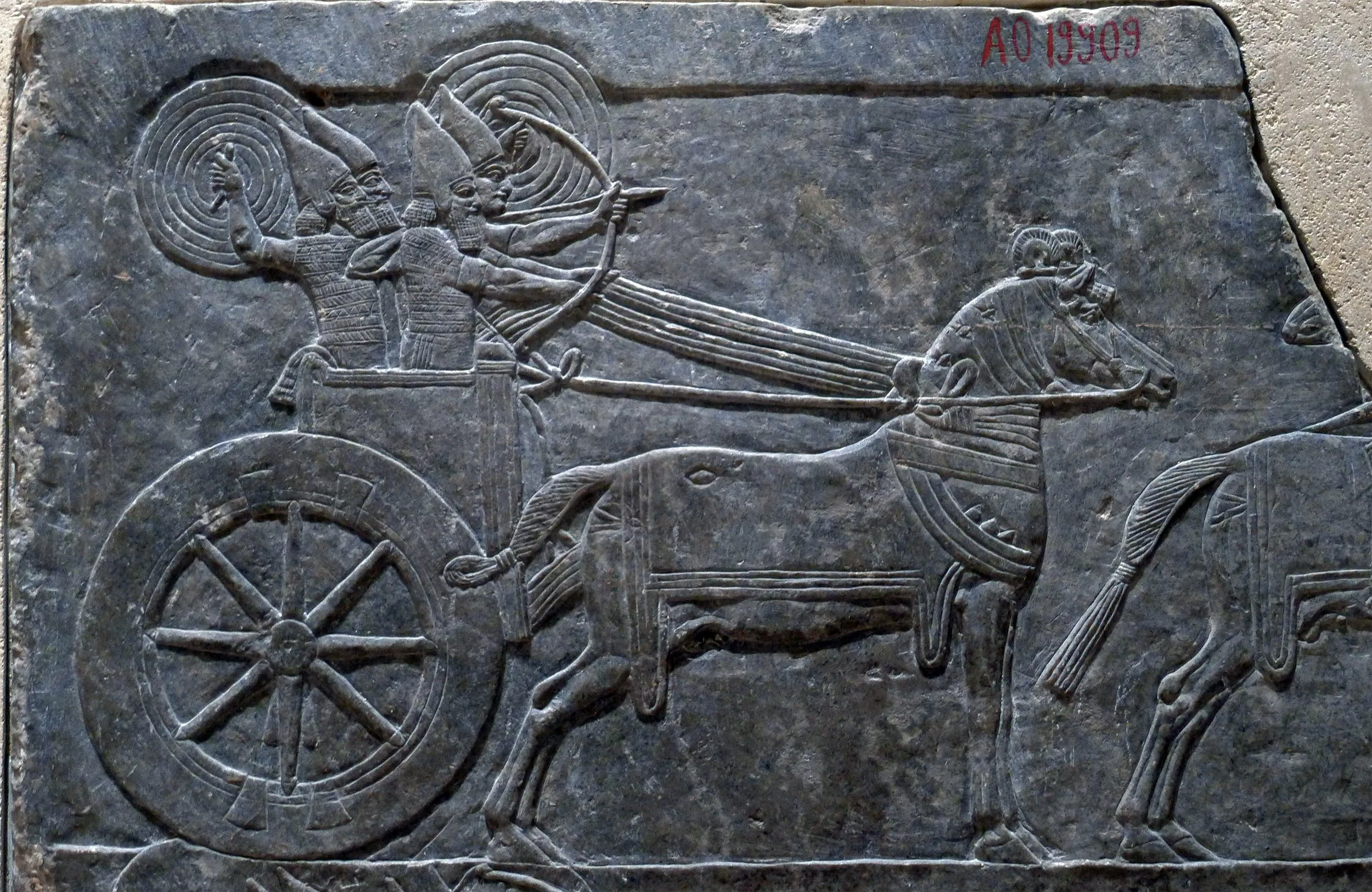 Wall panel relief depicting a chariot and horsemen