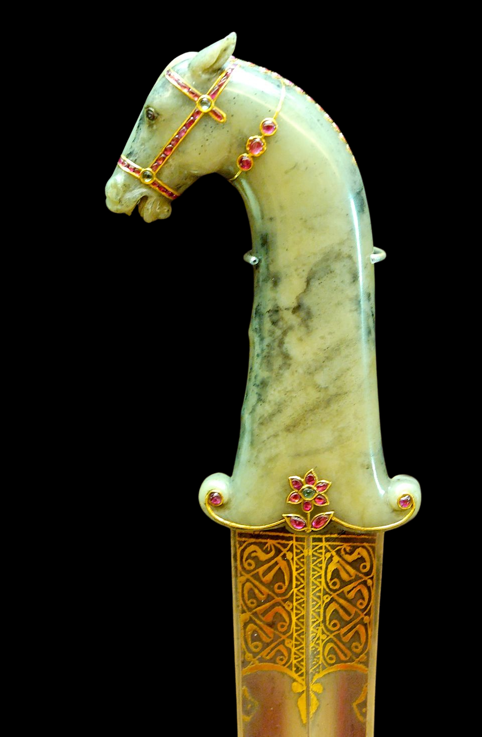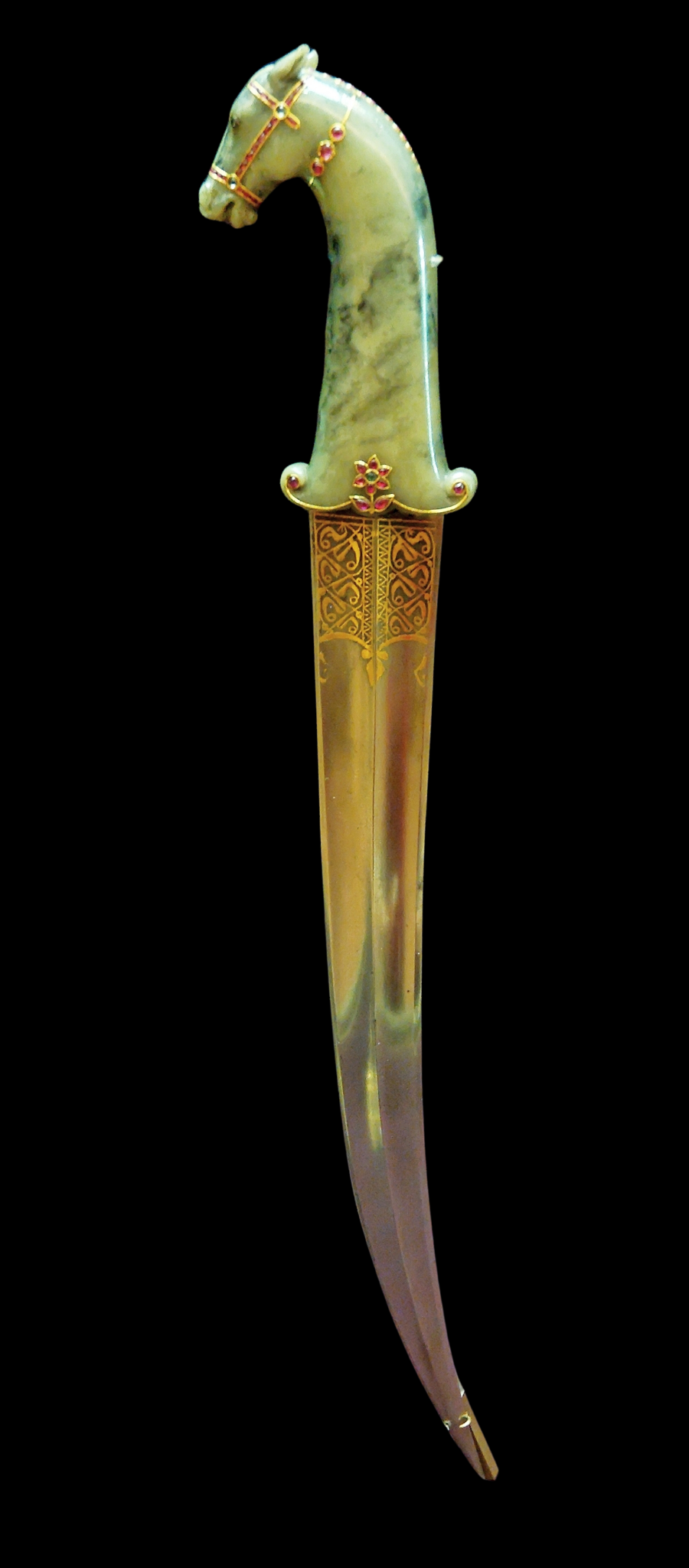 Damascus steel inlaid with gold, jade hilt inlaid with gold and semi-precious stones