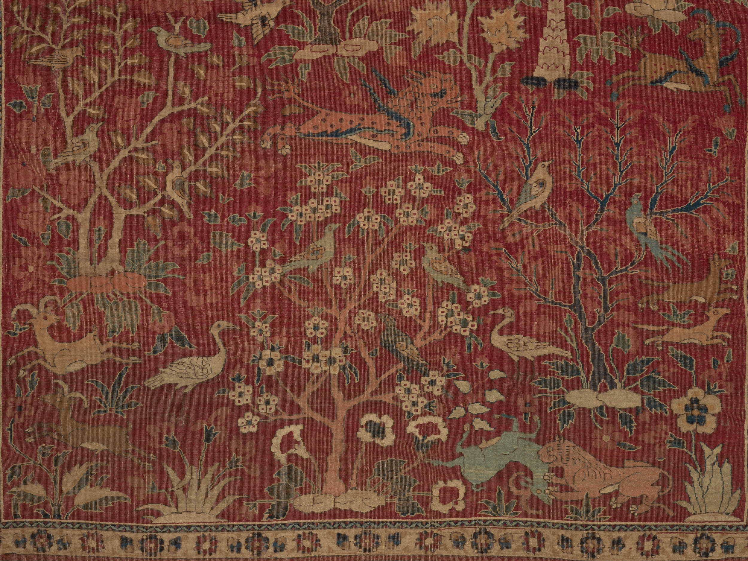 Cotton (warp and weft), wool (pile); asymmetrically knotted pile
